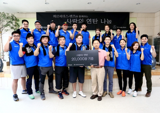 19일 다임러 계열사 및 메르세데스-벤츠 코리아 공식 딜러사 소속 임직원들이 원주 저소득층 가구에 연탄을 전하고 있다.
