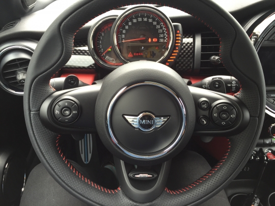 뉴 미니 JCW 스티어링 휠과 계기판