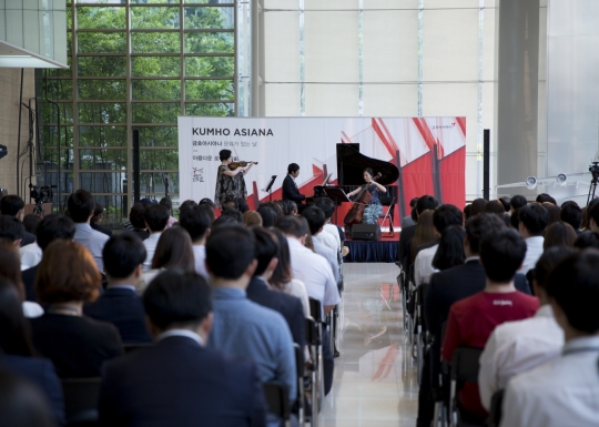 지난 24일 광화문 금호아시아나 사옥 1층 로비에서 '아름다운 로비음악회'가 열렸다. / 금호아시아나 제공