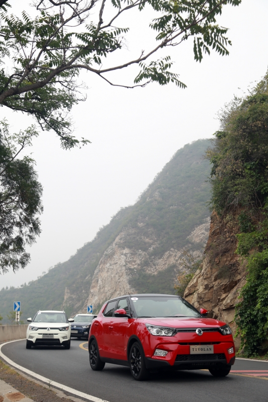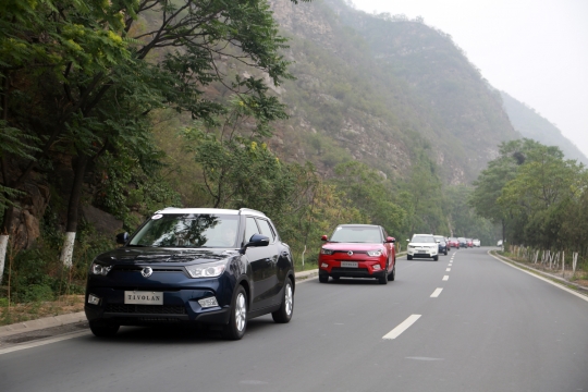 27일 중국 북경에서 열린 티볼리 미디어 시승행사에서 현지 기자들이 티볼리를 시승하고 있다.