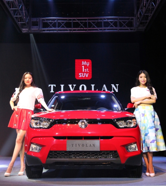 26일 중국 북경에서 열린 티볼리 론칭행사에서 현지 모델들이 티볼리를 선전하고 있다.