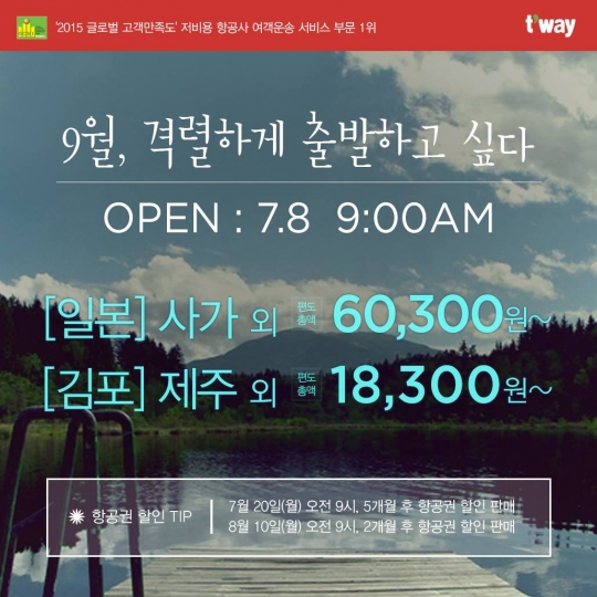 이번 특가 이벤트는 티웨이항공 홈페이지, 고객센터, 모바일 웹을 통해 구매할 수 있다.