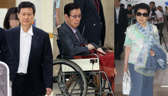지난 28일 신격호 총괄회장(가운데)의 입국을 시작으로 29일 신동빈 전 부회장(왼쪽), 30일 시게미츠 하츠코 씨(오른쪽)까지 입국했다. 재계는 신동빈 회장과의 전쟁을 위한 가족모임이 임박했다고 분석했다.