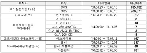 리콜 대상 자동차 / 국토교통부 제공
