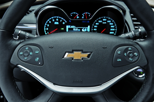 에어백 표시를 차량 내부 곳곳에서 확인 할 수 있었다. 임팔라에는 앞좌석을 포함해 운전석과 동반석 무릎 에어백까지 총 10개의 에어백을 기본 적용했다.