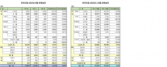 한국지엠 8월 판매실적 표 / 한국지엠 제공
