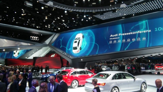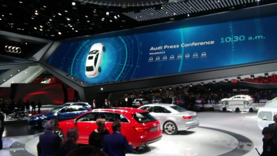폭스바겐은 고급 브랜드 아우디는 14일 오후 7시 30분(현지시간) 독일 프랑크푸르트 프라포트아레나에서 신차발표회를 열었다./사진=이정필 기자.