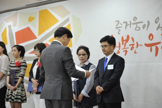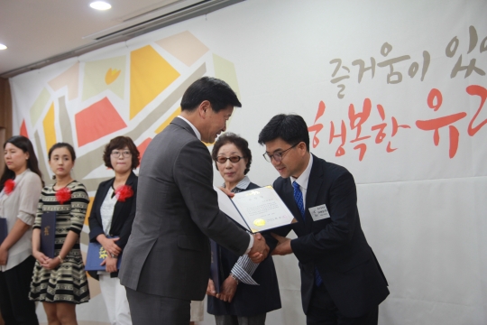 SK해운 직원이 중구청장으로부터 상장을 받고 있다. / SK해운 제공