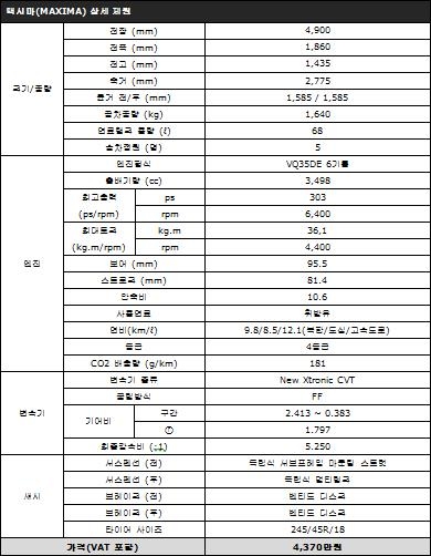 닛산 맥시마 제원