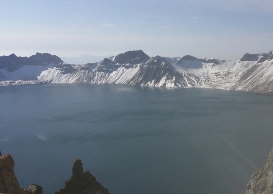 기자가 방문한 백두산 천지. 이곳의 물은 암반을 통해 42km 떨어진 백산수의 수원지 내두천에서 용출한다. /김성현기자