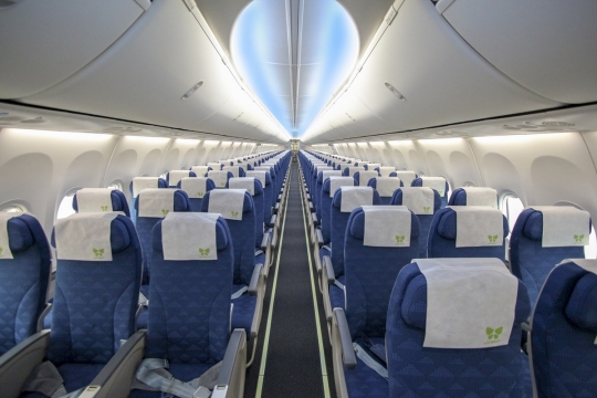 진에어 B737-800 신규 생산 항공기 내부 인테리어.