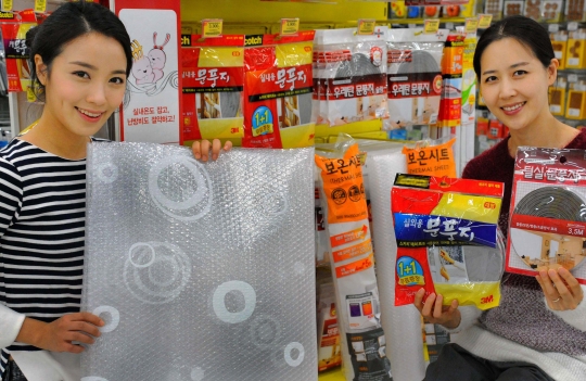 29일 홈플러스 영등포점에서 모델이 방한용품을 소개하고 있다. / 홈플러스