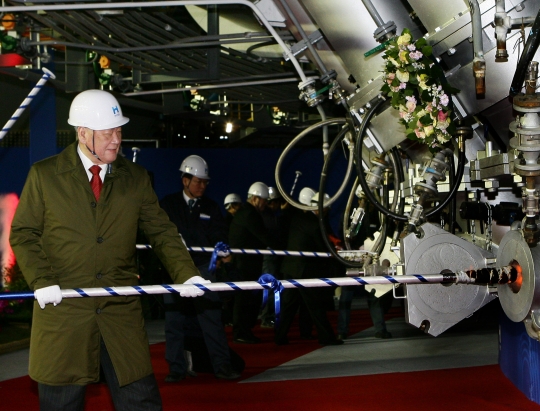 정몽구 현대자동차그룹 회장이 현대제철의 고로 화입식에 참석해 제1고로에 화입하고 있다.