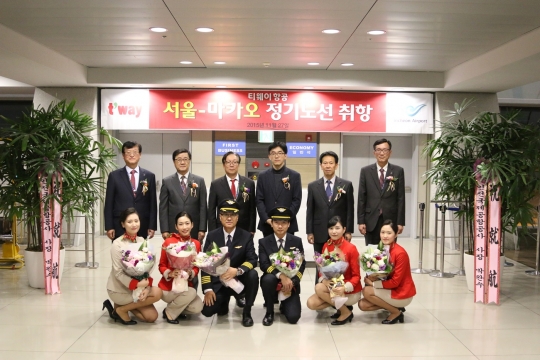 [메트로신문 양성운 기자] 저가항공사 티웨이항공이 지난 27일 인천국제공항에서 인천-마카오 노선의 취항식을 열고 본격적인 운항에 들어갔다.