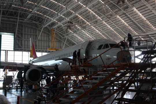 이날 격납고에서 만난 A320 항공기는 낙뢰 맞은 부분에 대하여 정밀점검을 진행하고 있었다. 낙뢰는 비행안전에 전혀 영향이 없는 문제이나, 만에 하나 발생가능한 기내 결함 가능성에 대비하여 정밀검검을 수행하는 것이다. 사다리를 타고 수리중인 항공기 내부에 들어간 순간 단순한 작업이 아니라는 것을 감지할 수 있었다. 기장석과 탑승객 좌석은 물론 바닥 시트까지 모두 들어낸 채 각종 정비기구 등이 어지럽게 쌓여 있었다. 화장실 설비와 룸서비스를 위한 갤리(기내 주방) 설비도 모두 뜯겨져 나가 있었다.
