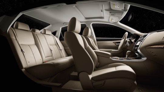 내부는 닛산 특유의 고급스러운 소재와 디테일이 운전석 공간부터 조수석, 그리고 뒷 좌석까지 단정하고 깔끔한 일관성을 유지하고 있었다. 특히 세심한 실내 수납공간을 갖추고 있다. 뒷 자석은 178㎝의 성인이 탑승해도 부족함 없이 충분히 넓은 공간을 제공한다. 계기판도 무척 단순한 형태를 갖추고 있다. 중심에는 드라이브 어시스트 디스플레이가 적용돼 있다. 타이어는 중형 치고는 큰 17인치 휠이 장착됐다.