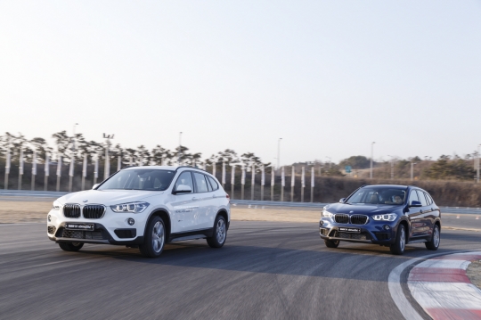 26일 BMW X1을 성능을 테스트 하기 위해 BMW 드라이빙 센터에 마련된 트랙을 주행하고 있다.