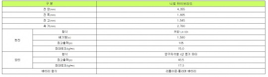 니로는 기아차가 하이브리드 전용으로 개발한 최고출력 105마력의 신형 카파 1.6GDI 엔진과 32㎾급 모터를 결합해 시스템 최고출력 141마력의 동력성능을 자랑한다. 아울러 하이브리드 전용인 6단 듀얼클러치변속기(DCT)를 적용해 높은 주행성능과 연비를 모두 충족시켰다.
