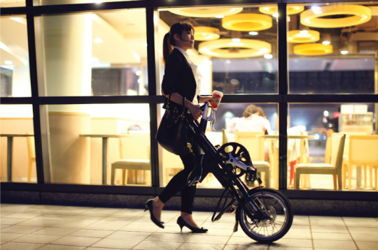 자전거를 접고 전용 가방에 넣어 들고 다니거나 끌고 다닐 수 있어 버스, 전철 등의 대중교통과 연계해 사용할 수 있다. 접었을 경우 차지하는 부피도 적어 타인에게 피해를 주지도 않는다.