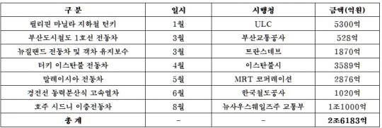 한편 현대로템은 이번 수주를 통해 올해 누적 수주 2조5000억원을 돌파했다. 현대로템은 올 1월 5300억원 규모의 필리핀 마닐라 전동차 턴키 사업 수주를 시작으로 3월 부산 1호선 전동차(528억원), 뉴질랜드 웰링턴 전동차 유지보수 사업(1870억원), 4월 터키 이스탄불 전동차(3589억원), 5월 말레이시아 무인전동차(2876억원), 6월 경전선 동력분산식 고속열차(1015억원) 등의 사업들을 수주하며 철도부문에서만 이번 호주 사업을 포함해 총 2조6183억원의 누적수주를 기록하고 있다.