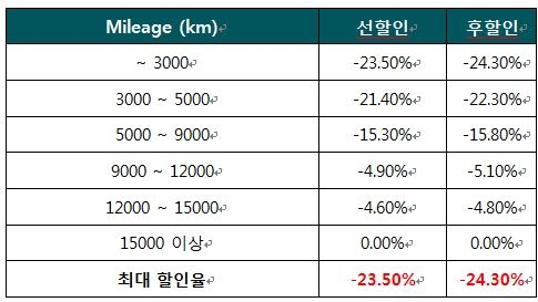AXA다이렉트 마일리지 특약 할인율./AXA다이렉트