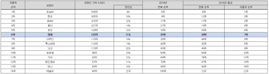 2016 글로벌 100대 브랜드 자동차 부문 순위
