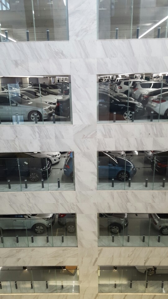 엠파크허브 엘리베이터는 전시된 자동차들을 볼 수 있도록 설계됐다. /김승호