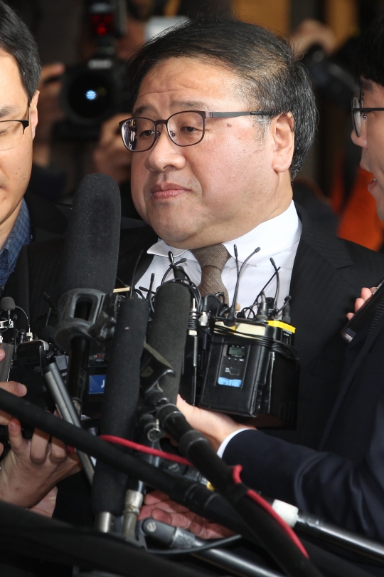 미르·K재단 강제모금 의혹을 받고 있는 안종범 전 청와대 정책조정수석비서관이 2일 오후 피의자 신분으로 서울 서초구 서울중앙지방검찰청으로 출석하고 있다.