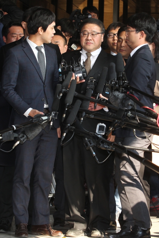 미르·K재단 강제모금 의혹을 받고 있는 안종범 전 청와대 정책조정수석비서관이 2일 오후 피의자 신분으로 서울 서초구 서울중앙지방검찰청으로 출석하고 있다.