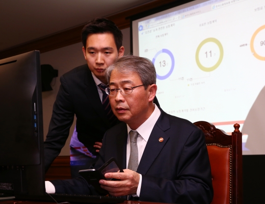 임종룡 금융위원장은 15일 오후 서울 중구 은행연합회에서 금융업계, 학계, 연구원 등 민간 전문가들이 참석한 가운데 간담회를 주재하고 신용정보원의 '내보험 다보여' 서비스를 시연했다./금융위