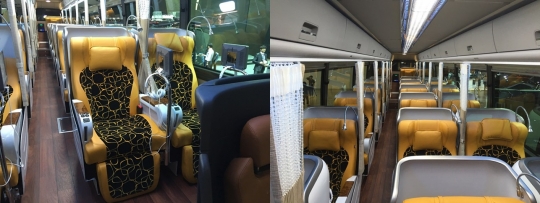 현대차가 새롭게 선보인 프리미엄 대형버스 '유니버스 프레스티지'의 좌석과 통로 모습.