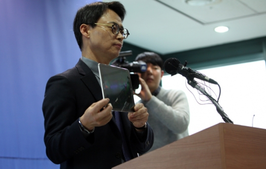 11일 오후 특검 대변인 이규철 특검보가 '비선실세' 최순실씨의 조카 장시호씨가 제출한 '제2의 태블릿PC'를 공개하고 있다. /공동취재단