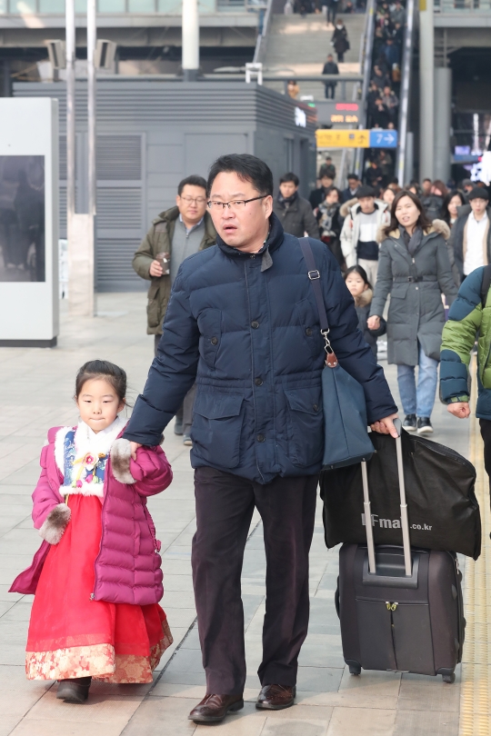 설 연휴를 앞둔 26일 오후 서울역을 찾은 귀성객이 고향으로 향하는 기차에 올라타고 있다.