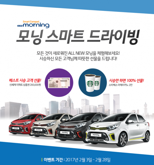 기아차 올 뉴 모닝 출시 기념 2월 특별 이벤트 포스터.
