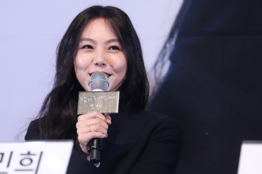 배우 김민희가 13일 오후 서울 광진구 롯데시네마 건대입구에서 열린 영화 '밤의 해변에서 혼자' 언론시사회에 참석해 취재진 질문에 답하고 있다.