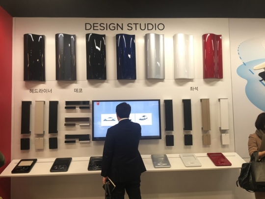 매장 벽면에 마련된 '디자인 스튜디오' 공간에서는 헤드라이너와 데코, 좌석의 컬러와 재질 등을 소비자가 원하는대로 조합해 볼 수 있고, 17인치 터치스크린을 통해 전기차와 일반 내연기관 차량의 성능과주행거리, 충전, 절약 가능 금액 등을 비교해 볼 수 있다.