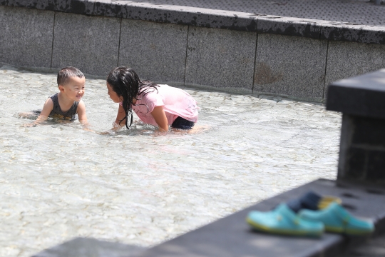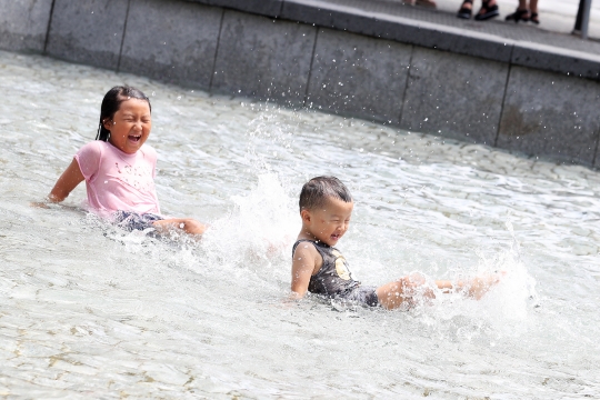 [포토] 입추에도 폭염특보..물놀이로 더위 쫓는 아이들