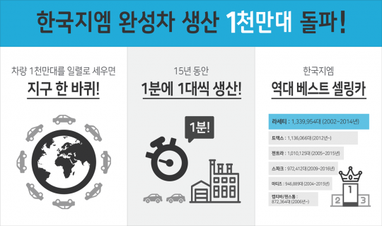 한국지엠 완성차 천만대 생산 돌파 인포그래픽