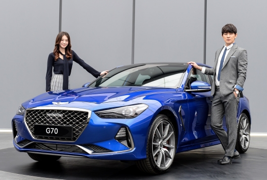 제네시스 G70는 '우아하면서도 역동적인 중형 럭셔리 스포츠 세단'으로 ▲역동적이고 우아한 외관과 스포티하고 고급스러운 실내 디자인 ▲3.3 가솔린 터보, 2.0 가솔린 터보, 2.2 디젤 등 파워트레인 3종과 제로백 4.7초의 강력한 동력 성능을 갖췄다.