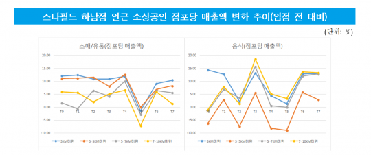 대형마트 입점으로도 주변 소상공인 사업체수와 종사자가 눈에 띄게 줄고, 지역내 총생산에 부정적 영향을 주고 있다는 설명이다.