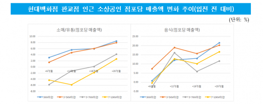 또 현대백화점 판교점을 중심으로 한 원거리 상권의 소매·유통점은 입점 18개월까지 점포당 매출액이 입점 전에 비해 평균 5.8% 감소한 것으로 파악됐다.