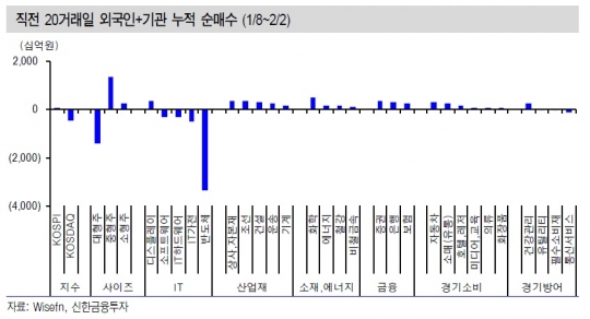 반면 가장 가파른 매도세를 기록한 상위 3개 종목은 삼성전자(6678억원), 셀트리온(3433억원), 삼성SDI(1008억원) 등 지난해 큰 폭의 상승세를 시현하고, PER이 16~201배에 달하는 등 '고평가'된 종목 위주로 이뤄졌다.