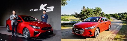 '형님' 현대차와 '아우' 기아차가 설 연휴 직후 중형 스포츠유틸리티차량(SUV)과 준중형 세단 시장에서 자존심 대결을 펼친다.