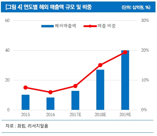 최 연구원이 주목한 점은 수익성이 높은 해외 매출 비중이 확대되고 있다는 것이다.