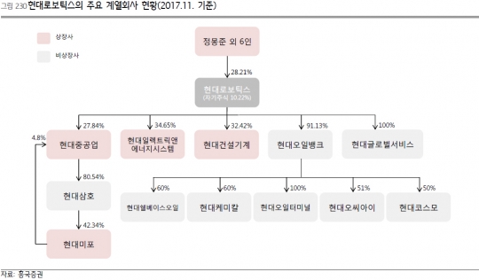 지난해 현대로보틱스를 중심으로 지주사 체제를 완비한 현대중공업그룹은 현대오일뱅크 상장을 시작으로 '현대중공업→현대삼호중공업→현대미포조선→현대중공업'으로 이어지는 순환출자 고리를 끊는 등 그룹 사업구조 재편에 나설 것으로 보인다.