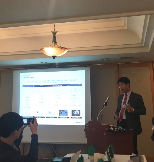 15일 여의도에서 열린 기자간담회에서 조성환 세종메디칼 대표이사가 사업 설명을 하고 있다./손엄지 기자
