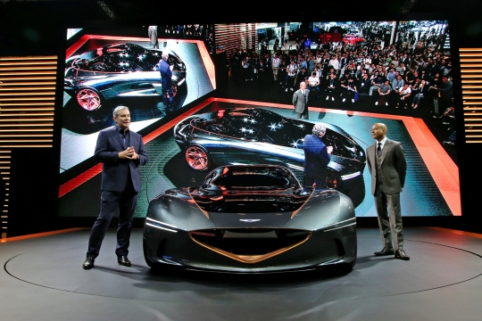 '2018 부산모터쇼'에서 아시아 최초로 공개된 '에센시아 콘셉트'를 소개하는 제네시스 디자인 담당 루크 동커볼케 부사장 (왼쪽)과 제네시스사업부장 맨프레드 피츠제럴드 부사장/현대자동차