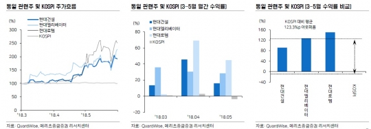 마주옥 한화투자증권 연구원은 "북한의 지정학적 리스크 완화로 '코리아 디스카운트'가 해소될 경우 코스피 3000포인트 돌파도 가능할 것으로 본다"며 "남북경협 수혜주의 상승세는 지속적으로 이어질 것"이라고 전망했다.