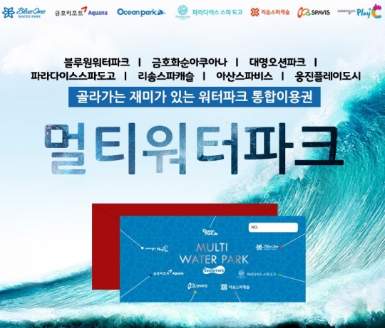 올해 CJ오쇼핑은 워터파크 이용권의 상품 포트폴리오를 더욱 강화했다. 10년째 단독으로 운영하고 있는 대명 오션월드의 주중 숙박권은 작년까지 이용 지점이 홍천, 양평, 단양 3군데였지만 올해는 제주, 변산, 천안, 청송 등 8개 지역으로 늘렸다. 전국 각 지역의 개별 워터파크 이용권의 묶음 상품인 '멀티워터파크 이용권' 상품도 협력업체를 늘렸다. 아산 스파비스, 덕산 리솜 스파캐슬, 경주 블루원 워터파크 등 기존 6개 지역 외에 부천 웅진플레이도시를 추가해 수도권 소비자의 접근성을 강화했다. 멀티워터파크 이용권을 구매하면 7군데 워터파크 중 한 군데를 선택해 자유롭게 이용할 수 있다.