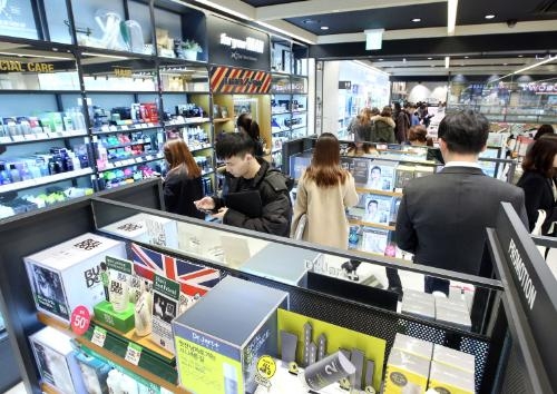 올리브영 명동 본점 그루밍존에서 남성 고객이 제품을 둘러보고 있다./올리브영